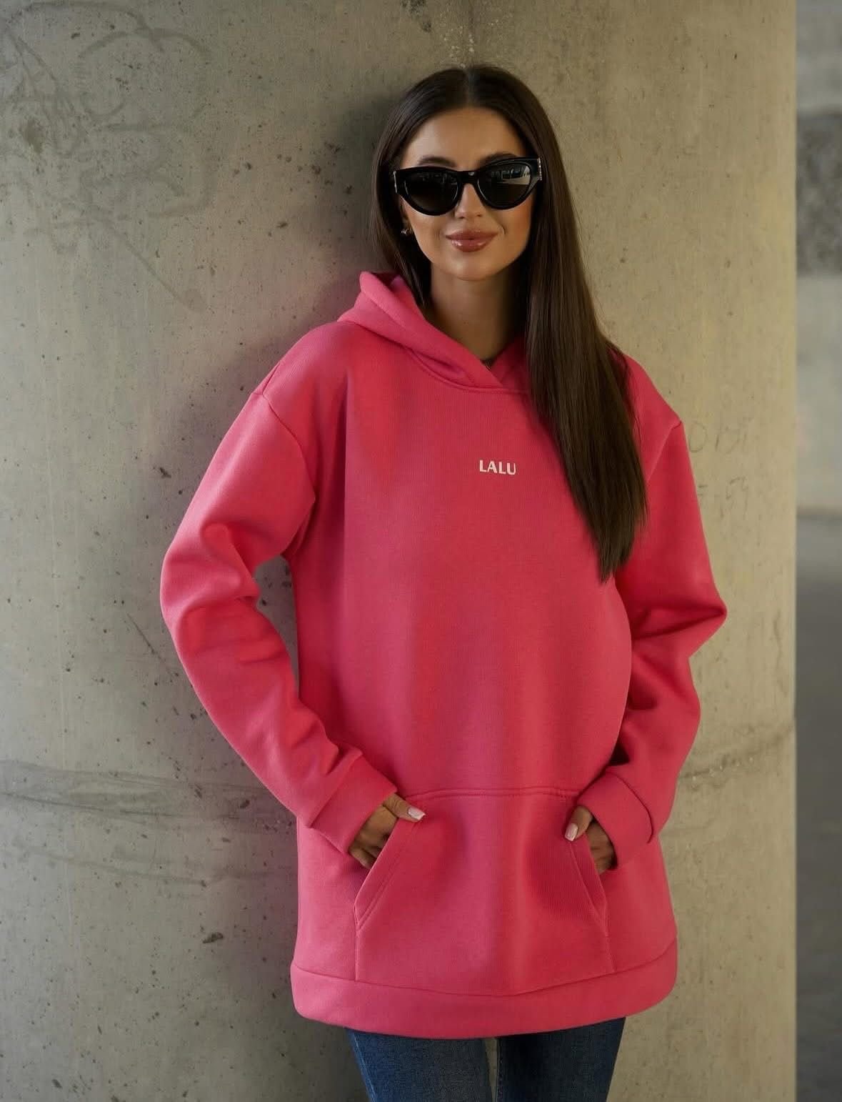 Wygodna bluza z kapturem i kieszenią z przodu. Logo Lalu z przodu, efektowny nadruk na plecach. Dostępna w różnych kolorach. Rozmiar uniwersalny.