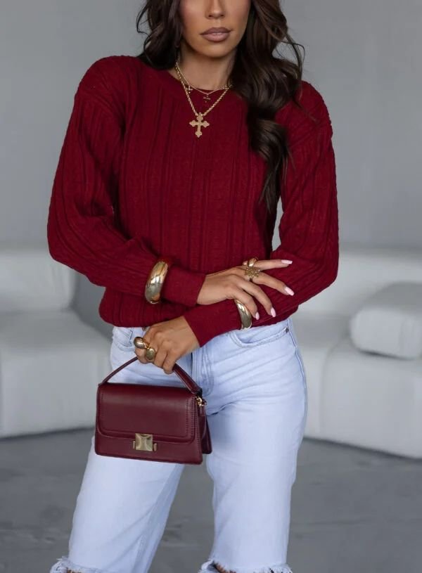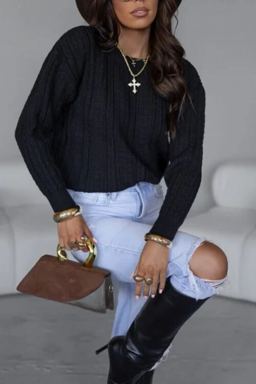 Sweter o subtelnym, drobnym splocie. Wykonany z miękkiej, przyjemnej w dotyku dzianiny. Model posiada klasyczny, okrągły dekolt. Rękawy swetra wykończone ściągaczem. Wyrób dziewiarski.